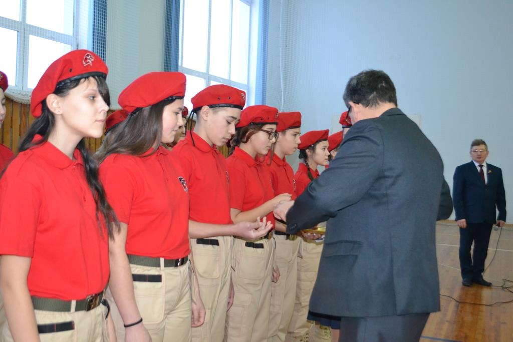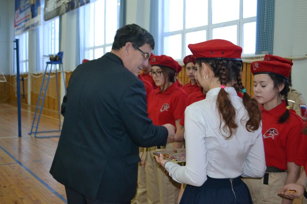 22 декабря прошли два значимых события для школьников: Завершающий этап Чемпионата по Волейбюолу среди школьников старшего звена и принятие новых членов в военно-патриотическое общество Юнармия. Перед открытием Чемпионата прошла торжественная церемония посвящения в Юнармию. В исполнении молодых юнармейцев прозвучали песни "Вперед Россия" и  "Полки идут стеной". Начальник отдела образования Илшат Рашидович вновь вступившим вручил значки Юнармии и пожелал им здоровья, удачи во всех начинаниях, быть патриотами своей Родины.