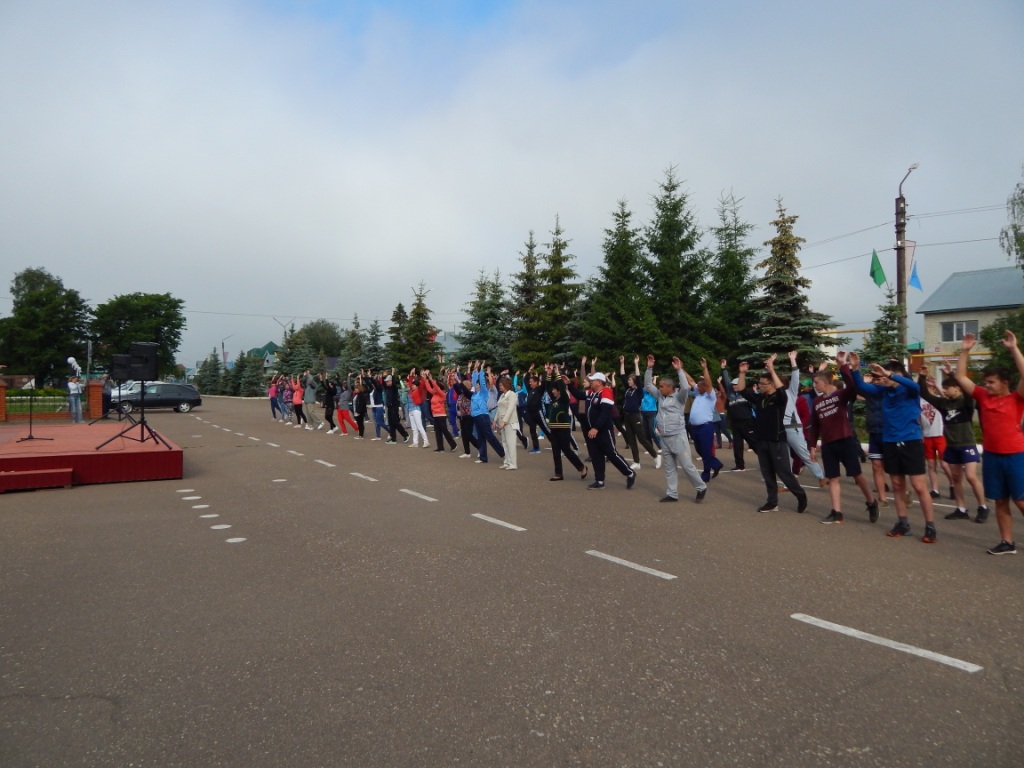 27 июня с утра царило необычное оживление в центре. Работники многих организации пришли в этот день на утренюю зарядку, которую провели тренера-преподаватели Детско-юношеской спортивной школы Фагамов Ильшат, Шаяхметов Явгат и Сабиров Айдар. Участники получили положительный заряд на весь день.