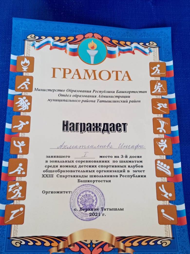 13 марта в с. Верхние Татышлы прошли зональные соревнования по шахматам в зачет XXIII Спартакиады школьников РБ. Команда шахматистов, из школы с. Старые Казанчи достойно выступила на зональном этапе. Несмотря на юный возраст, они сумели подняться на пятое место из семи Ахматгалиев Инсаф на третий доске занял первое место. Шайхинуров Айназ — 4, Казиханов Фидан — 5 и Ахматгалиева Рамиля — 6. место на своих досках.